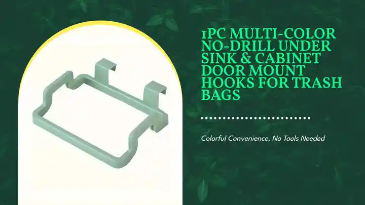 The 1pc Multi-Color No-Drill Under Sink & Cabinet Door Mount Hook is a convenient and colorful solution for hanging trash bags in kitchens or bathrooms. Designed for easy installation, it securely hooks over cabinet doors without the need for tools or drilling, protecting your surfaces from damage. Its compact, durable design fits most standard cabinet doors and provides a tidy, hands-free way to manage waste while cooking or cleaning.
