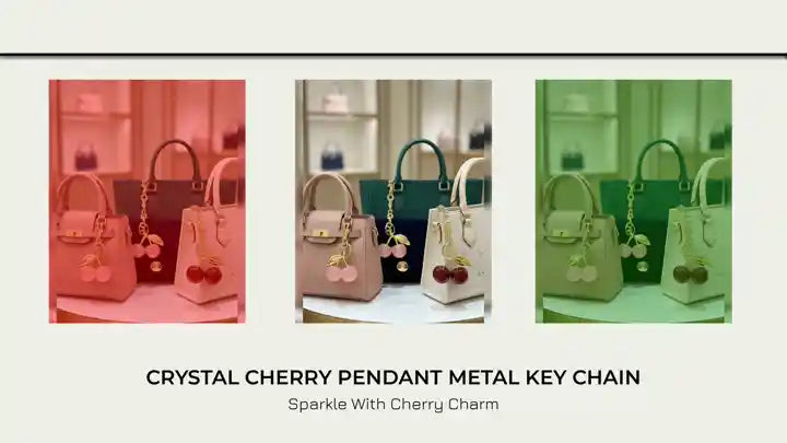 The Crystal Cherry Pendant Metal Key Chain is a charming accessory that adds a touch of sparkle to your everyday essentials. Featuring two glossy cherry charms adorned with shimmering crystals, it blends playful elegance with durable design. The sturdy metal key ring securely holds your keys, bags, or accessories, making it both practical and stylish. Perfect as a gift or personal keepsake, this key chain brings a hint of sweetness and shine wherever you go.