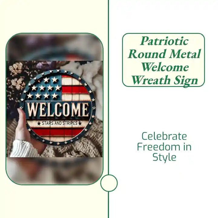 Celebrate in style with this 4th of July Wreath featuring an American flag design and a patriotic hanging sign. The wreath bursts with vibrant red, white, and blue colors, adorned with stars and stripes, while the hanging sign proudly displays an inspiring message of Welcome *Stars and Stripes. Perfect for your front door or porch, it brings a festive and spirited touch to your home, making it a standout decoration for Independence Day and beyond. Durable and weather-resistant, this wreath is designed to shine all season long.